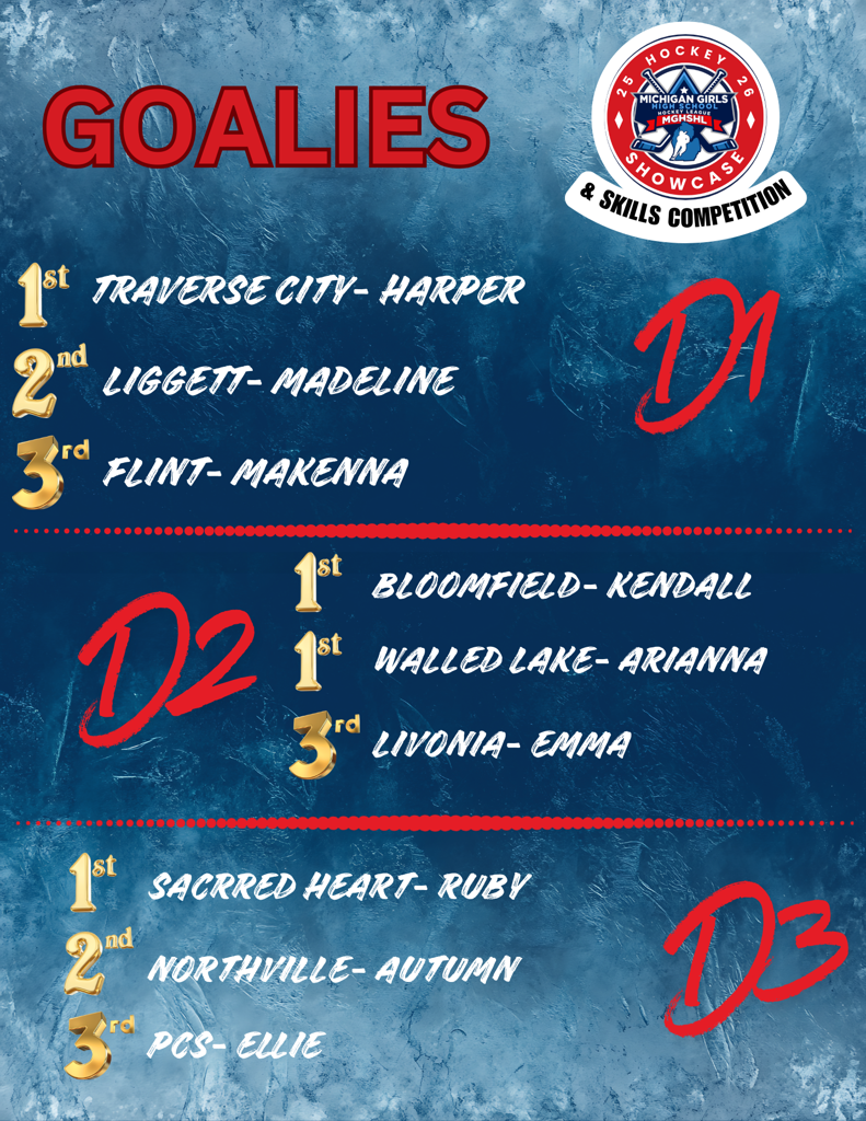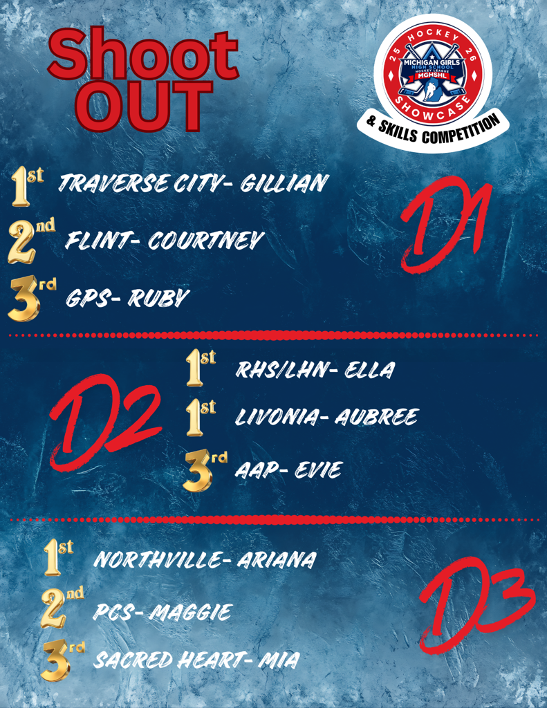 Following the showcase games, players took part in the Skills Competition, which included Agility, Hardest Shot, Fastest Skater, and Shootout events for both skaters and goaltenders. Athletes competed within their respective divisions—Division 1, Division 2, and Division 3—with 1st, 2nd, and 3rd place finishers recognized in each event.